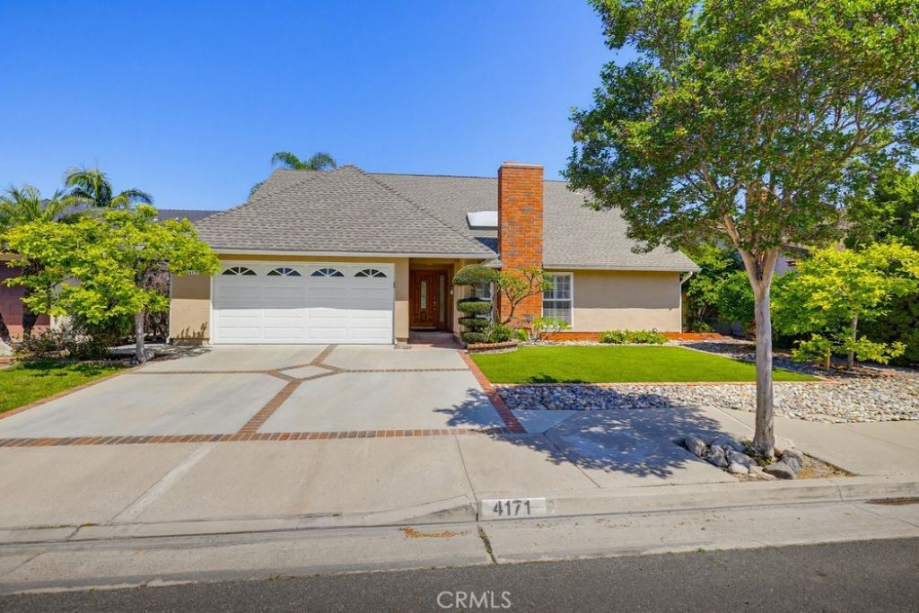 Welcome to 4171 Paseo De Plata, a beautiful residence located in one of Cypresss most sought-after neighborhoods. This home perfectly blends classic California charm with spacious, light-filled interiors and a backyard built for the ultimate summer lifestyle. As you step through the elegant extra-wide door entry, you are greeted by an expansive living room featuring soaring vaulted ceilings and a dramatic floor-to-ceiling brick fireplace. Natural light pours in through a large skylight and elegant shutters, highlighting the rich wood-toned flooring that flows throughout the main living areas. The heart of the home is the bright, open-concept kitchen equipped with: ? Substantial oak cabinetry for ample storage. ? Durable granite-style countertops and a clean, white appliance suite. ? A charming breakfast nook and a large window overlooking the pool. ? A formal dining room with a classic chandelier, perfect for hosting family gatherings. Step through the sliding glass doors to find your own private resort. The backyard is an entertainer's dream, featuring: ? A sparkling swimming pool, pristine and ready for the summer heat. ? A large concrete patio shaded by a classic white pergola?ideal for al fresco dining. ? Privacy-enhancing block walls and lush greenery, including mature fruit trees. Located in a central hub of Orange County, this home offers unparalleled convenience. You are minutes away from the 91, 605, and 22 freeways, making any commute a breeze. With Beach Blvd nearby, premier shopping, dining, and local parks are right at your fingertips.